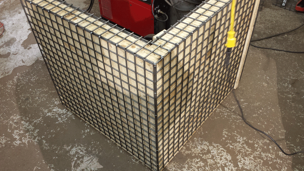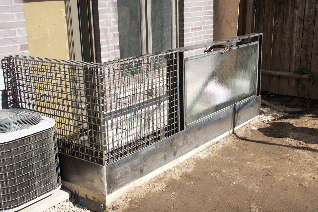 Right Angle Gabion, Corten Planter, Safety-glass Entrance Wall (w/ Handrail)