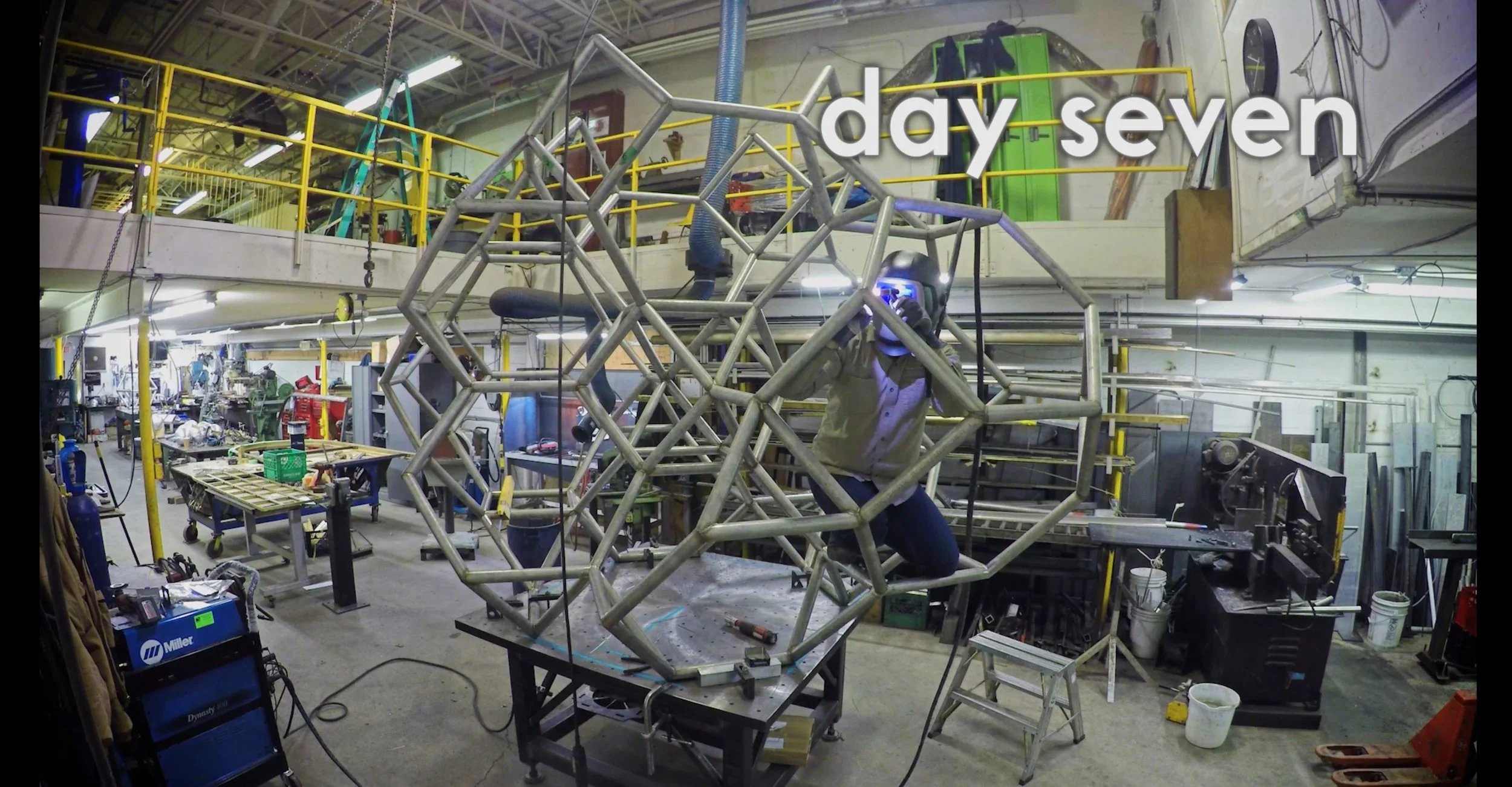 25' tall stainless sculptural molecular trees at the north entrance to the new Humber River Regional Hospital on Wilson Ave. in Toronto. 5" stainless pipe trunks, 3" stainless pipe branches and 1.5" stainless pipe tessellation of Archimedean solids in the form of a canopy. 10 dia. aluminum spheres. Scroll right for lots of fabrication photos...